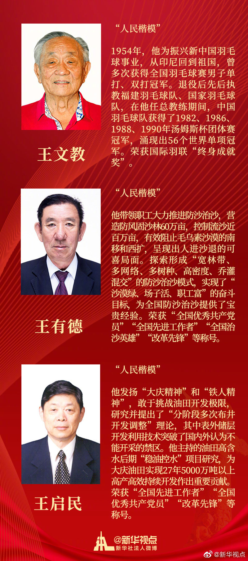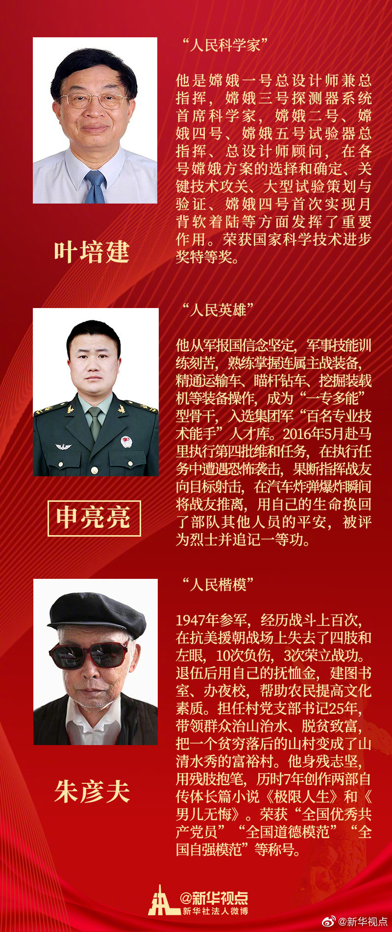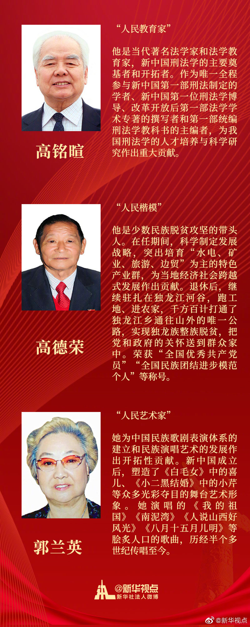 南仁東、董建華、于漪、王蒙、王有德等28人獲授國(guó)家榮譽(yù)稱號(hào)。他們與時(shí)代同行、砥礪奮進(jìn),為共和國(guó)的事業(yè)鞠躬盡瘁,不朽的“鋼鐵精神”將永遠(yuǎn)激勵(lì)著我們。為這些閃亮的名字點(diǎn)贊!轉(zhuǎn)發(fā)傳遞,致敬功勛!