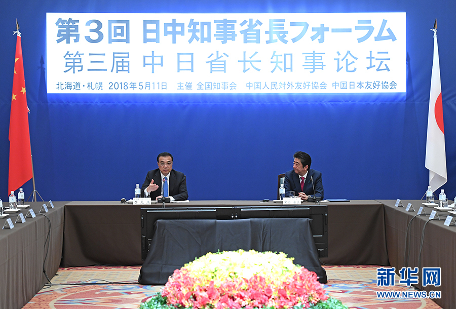 當(dāng)?shù)貢r(shí)間5月11日上午,國務(wù)院總理李克強(qiáng)在北海道札幌下榻飯店出席中日省長知事論壇開幕式并致辭。日本首相安倍晉三出席。 新華社記者 張領(lǐng)攝