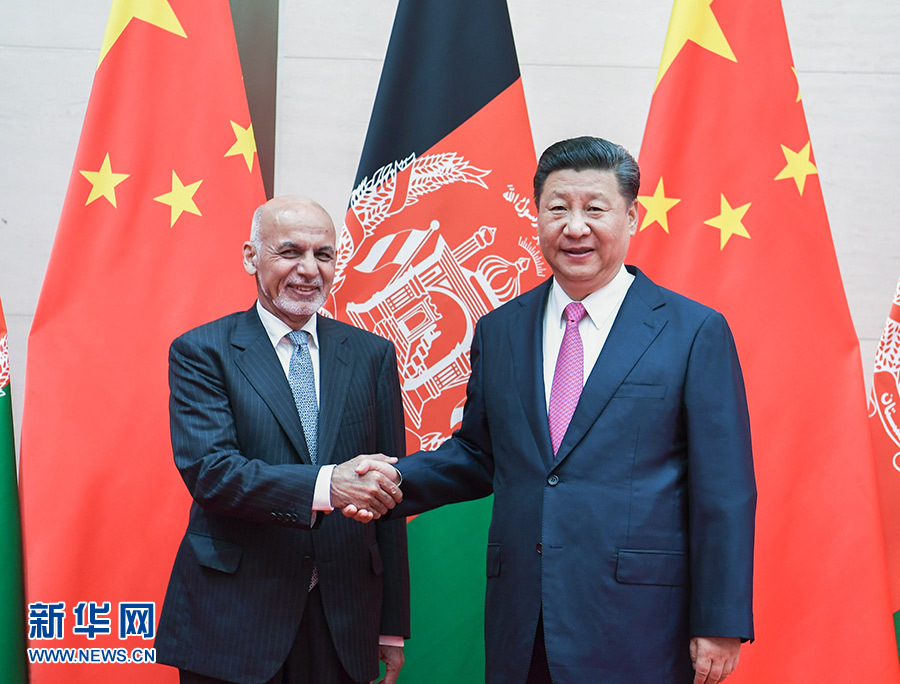 6月10日,國家主席習近平在青島會見阿富汗總統加尼。新華社記者 高潔 攝