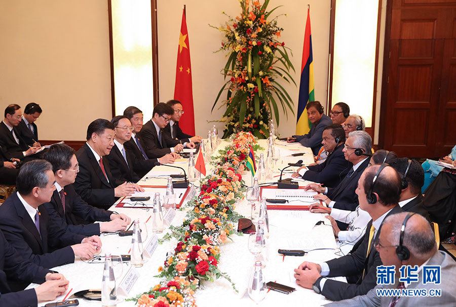 習近平強調,中毛都是發展中國家,有著相似的發展經歷和發展任務。當前,中毛關系發展面臨新的重要機遇。我們要保持高層交往勢頭,加強政府部門、立法機構、地方等往來,繼續在涉及彼此核心利益和重大關切問題上相互理解和支持。要挖掘務實合作潛力,提高雙方貿易和投資自由化便利化水平,早日商簽中毛自由貿易協定,發揮毛里求斯參與共建“一帶一路”的獨特區位優勢,加強溝通對接,深化廣泛領域合作。要加強人文交流,促進相互了解。中方愿同毛方加強氣候變化南南合作,密切在國際事務中協作,維護發展中國家共同利益。