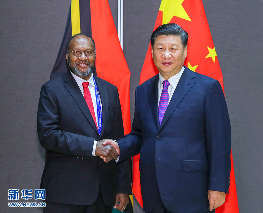 11月16日,國家主席習近平在莫爾茲比港分別會見建交太平洋島國領導人。這是習近平會見瓦努阿圖總理薩爾瓦伊。 新華社記者 謝環馳 攝