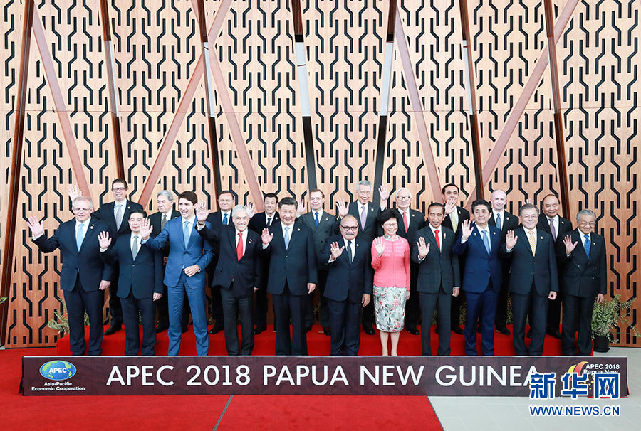 11月17日,國家主席習近平應邀出席在巴布亞新幾內亞莫爾茲比港舉行的亞太經合組織工商領導人峰會并發表題為《同舟共濟創造美好未來》的主旨演講。同日,習近平還出席了亞太經合組織領導人同工商咨詢理事會代表對話會。對話會前,習近平同其他亞太經合組織成員經濟體領導人、代表合影。 新華社記者 龐興雷 攝
