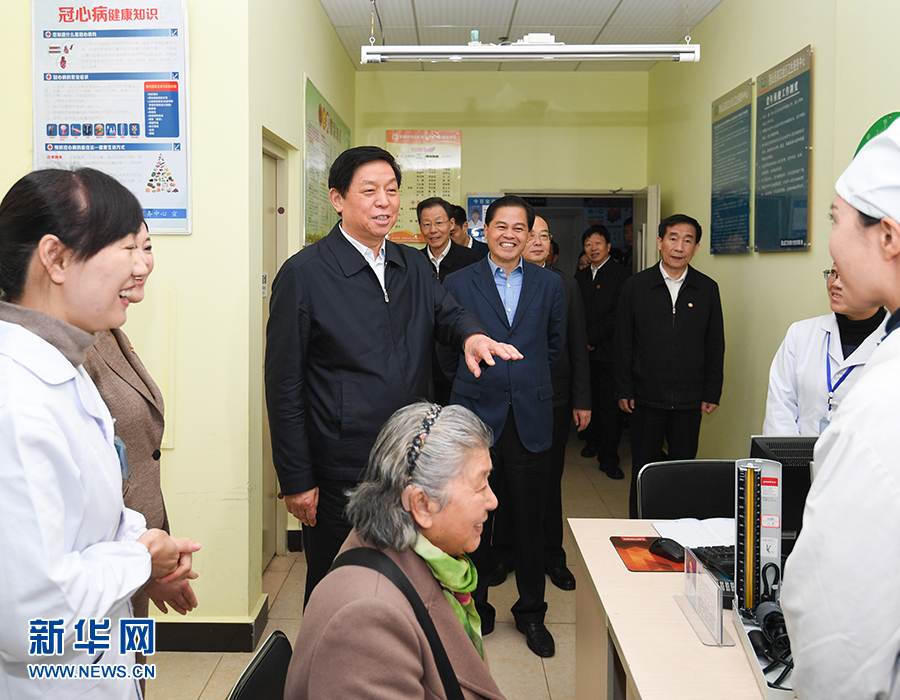 11月28日至12月1日,中共中央政治局常委、全國(guó)人大常委會(huì)委員長(zhǎng)栗戰(zhàn)書(shū)在云南就制定基本醫(yī)療衛(wèi)生與健康促進(jìn)法開(kāi)展立法調(diào)研。這是11月29日,栗戰(zhàn)書(shū)在昆明市西山區(qū)前衛(wèi)社區(qū)衛(wèi)生服務(wù)中心,與醫(yī)務(wù)人員和就診患者親切交談。 新華社記者 申宏 攝