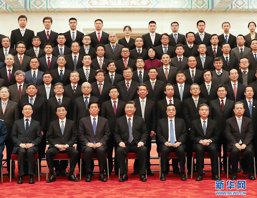 2月20日,黨和國家領(lǐng)導(dǎo)人習(xí)近平、李克強(qiáng)、栗戰(zhàn)書、汪洋、王滬寧、趙樂際、韓正等在北京人民大會堂會見探月工程嫦娥四號任務(wù)參研參試人員代表。 新華社記者鞠鵬攝