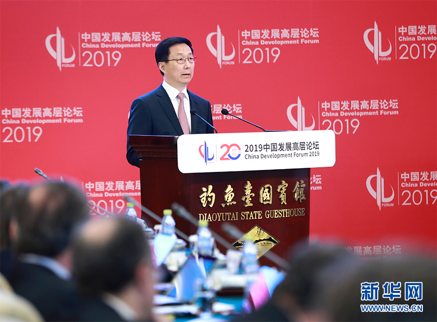 3月24日,中國發(fā)展高層論壇2019年年會在北京開幕。中共中央政治局常委、國務(wù)院副總理韓正出席開幕式并致辭。新華社記者 龐興雷 攝
