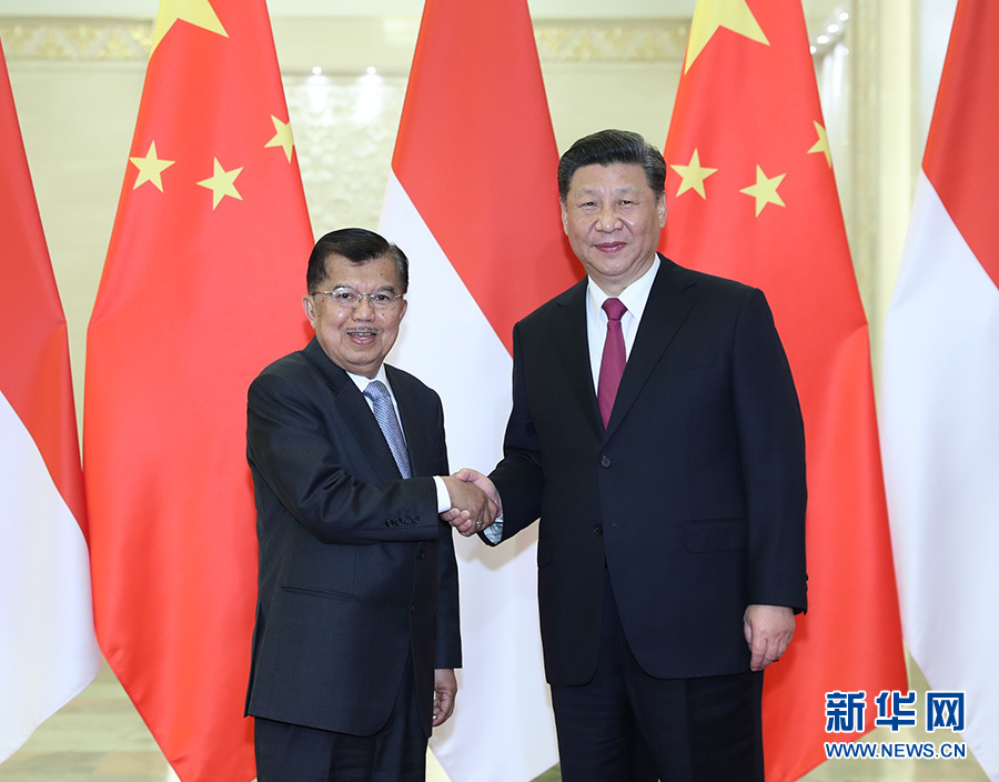 4月25日,國(guó)家主席習(xí)近平在北京人民大會(huì)堂會(huì)見印度尼西亞副總統(tǒng)卡拉。 新華社記者 王曄 攝