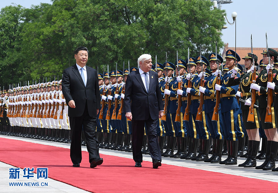 5月14日,國家主席習(xí)近平在北京人民大會(huì)堂同希臘總統(tǒng)帕夫洛普洛斯舉行會(huì)談。這是會(huì)談前,習(xí)近平在人民大會(huì)堂東門外廣場(chǎng)為帕夫洛普洛斯舉行歡迎儀式。 新華社記者 張領(lǐng) 攝