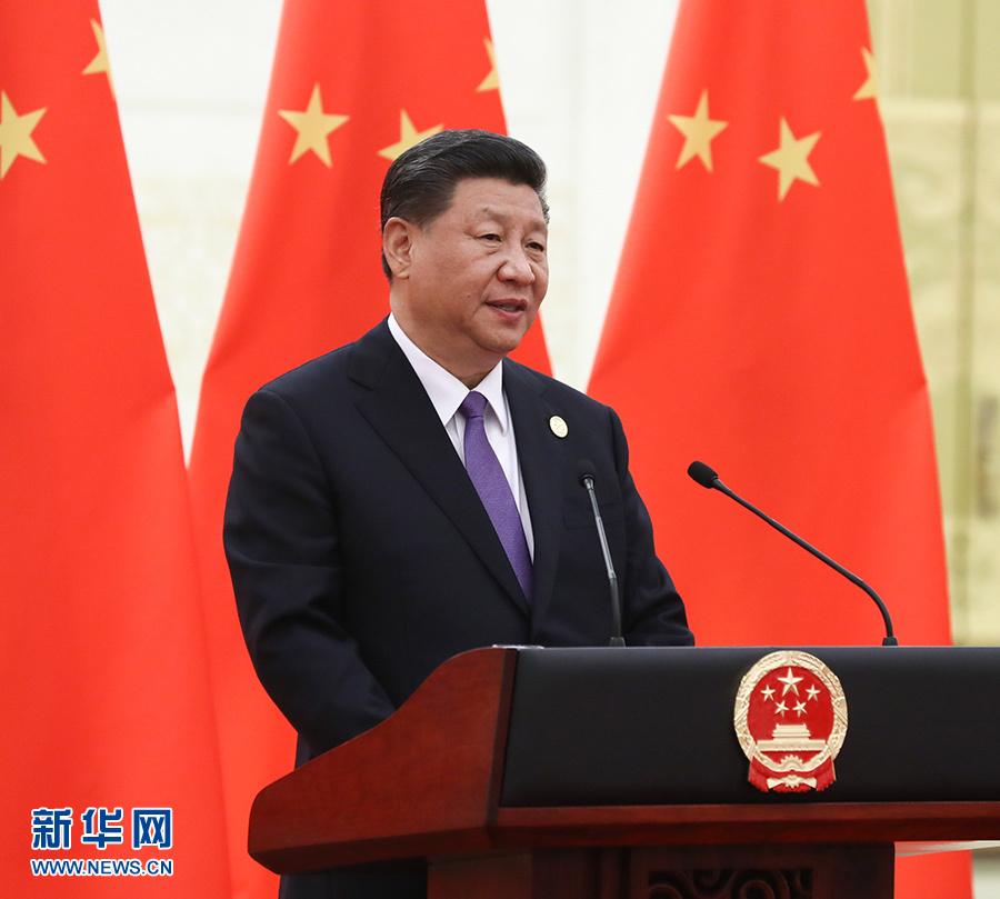 5月14日,國家主席習近平和夫人彭麗媛在北京人民大會堂舉行宴會,歡迎出席亞洲文明對話大會的外方領導人夫婦及嘉賓。這是習近平在宴會上發表致辭。 新華社記者 鞠鵬 攝