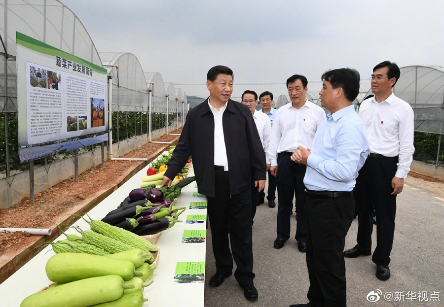 20日下午,習(xí)近平總書記來到江西省于都縣梓山富硒蔬菜產(chǎn)業(yè)園考察調(diào)研。產(chǎn)業(yè)園以“龍頭企業(yè)+合作社+農(nóng)戶和貧困戶”發(fā)展模式,帶動了當(dāng)?shù)卮迕衩撠氈赂?。看到總書記來了,正在大棚里勞作的鄉(xiāng)親們激動地說:“感謝黨的好政策,讓我們過上了幸福生活!”習(xí)近平對鄉(xiāng)親們說:“共產(chǎn)黨就是為人民群眾謀幸福的,黨中央想的就是千方百計讓老百姓過上好日子。芝麻開花節(jié)節(jié)高,今后日子會更好!”(文字:張曉松 攝影:謝環(huán)馳、鞠鵬)