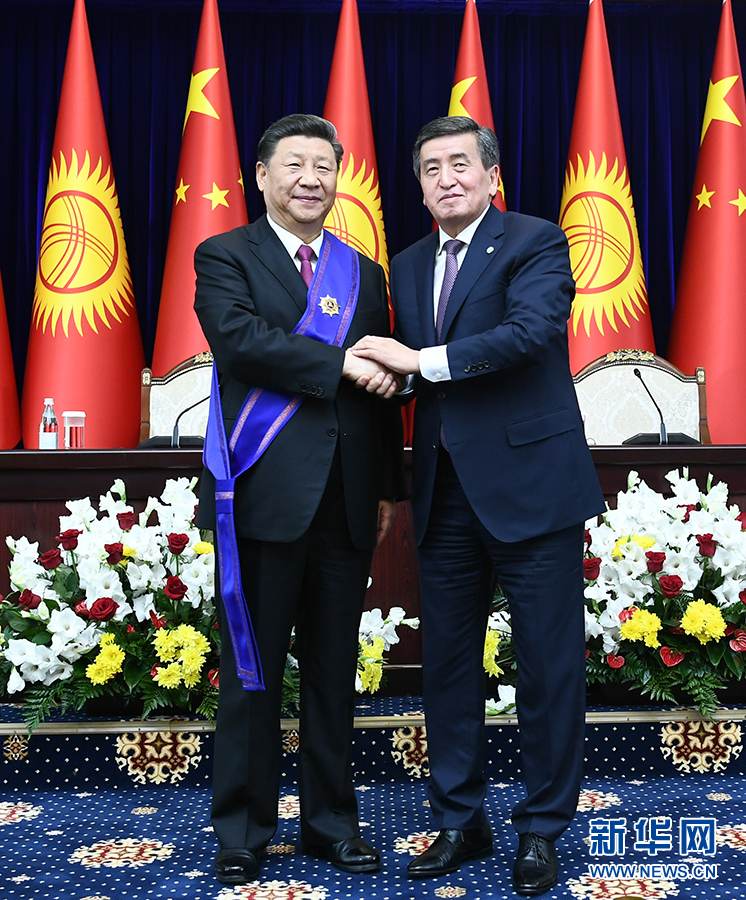 習近平表示,熱恩別科夫總統(tǒng)授予我“瑪納斯”一級勛章,充分體現(xiàn)了吉爾吉斯斯坦人民對中國人民的深厚情誼,我對此十分珍視。我愿同熱恩別科夫總統(tǒng)攜手努力,深化兩國傳統(tǒng)友好,推動中吉全面戰(zhàn)略伙伴關(guān)系不斷取得新成果,更多惠及兩國人民。