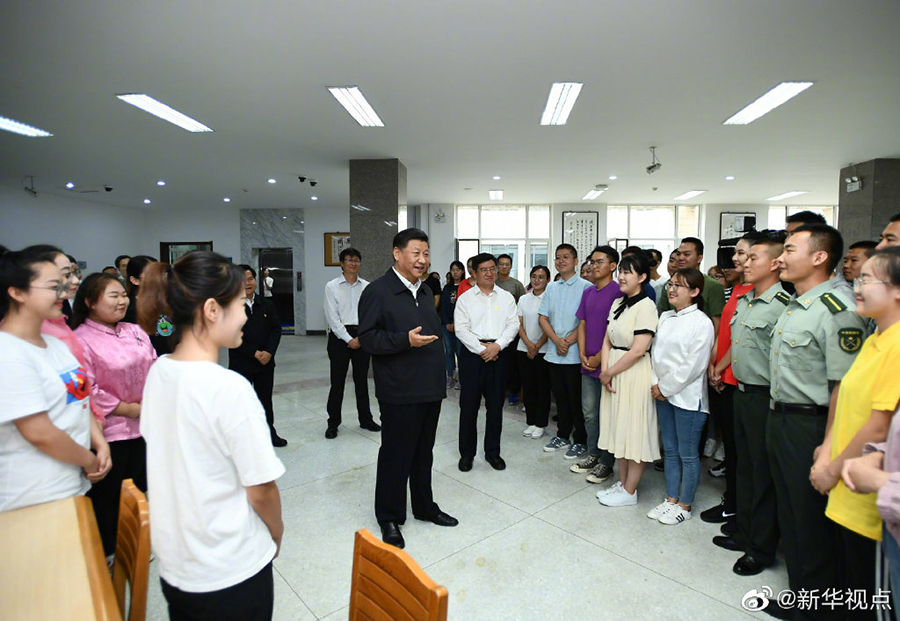 16日上午,正在內蒙古考察調研的習近平總書記來到內蒙古大學,走進圖書館同學生們親切交談。習近平指出,少年強則中國強。看到年青人健康聰明、奮發向上,充滿正能量,心里十分高興。長江后浪推前浪,青出于藍而勝于藍,未來是屬于年青人的。在中華民族偉大復興的進程中,你們生逢其時,何其幸也。再過30年,到本世紀中葉實現第二個百年奮斗目標的時候,你們正好是國家的骨干和棟梁。大家要志存高遠、腳踏實地,學好知識,打好基礎,增長才干,將來為中華民族偉大復興貢獻自己的智慧和力量。 (文字:張曉松、朱基釵 攝影:謝環馳、李學仁)