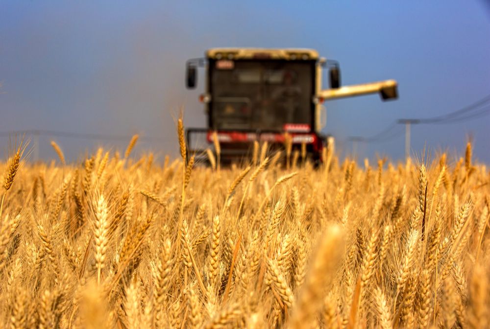 2020年6月10日,在河北省武安市大同鎮(zhèn)馬會(huì)村,農(nóng)機(jī)手操作機(jī)械設(shè)備收割小麥。新華社記者 王曉 攝