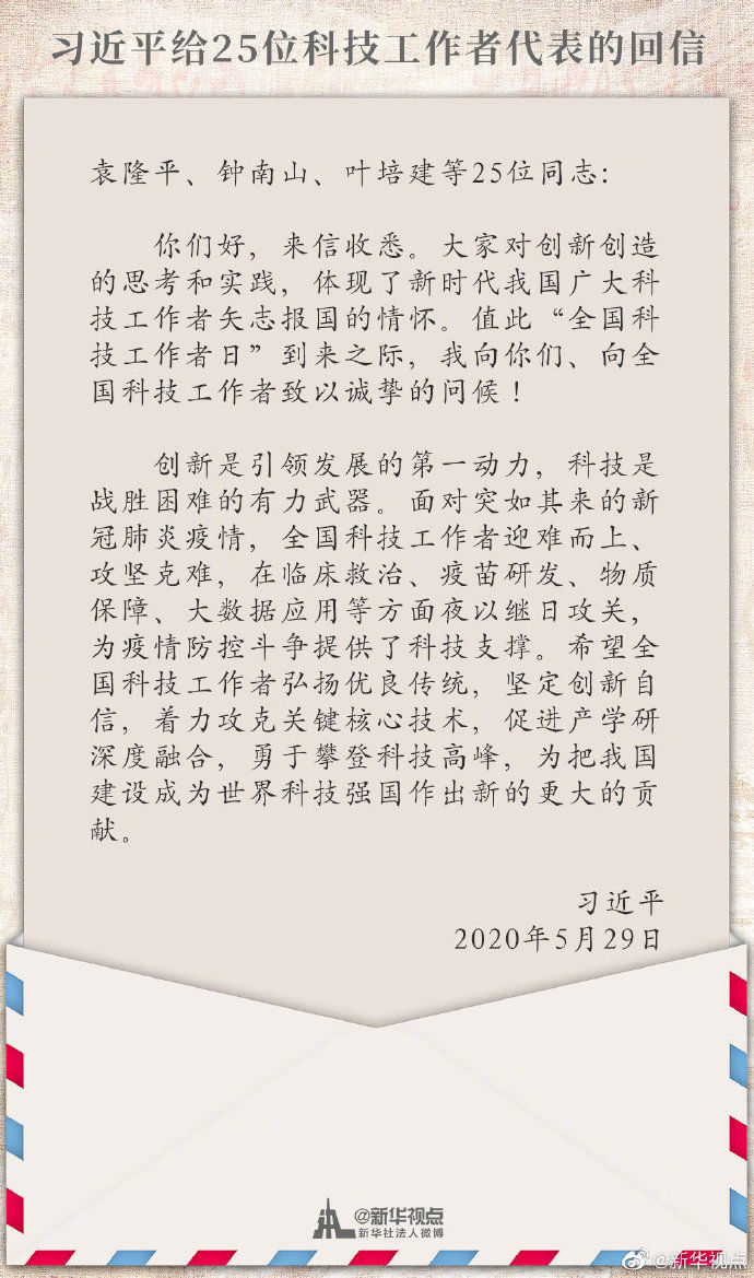“科技是戰勝困難的有力武器”——今年5月,習近平給25位科技工作者代表回信時這樣勉勵。