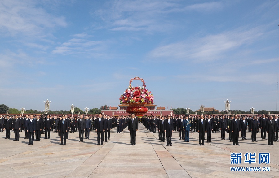 9月30日上午,黨和國家領(lǐng)導(dǎo)人習(xí)近平、李克強(qiáng)、栗戰(zhàn)書、汪洋、王滬寧、趙樂際、韓正、王岐山等來到北京天安門廣場,出席烈士紀(jì)念日向人民英雄敬獻(xiàn)花籃儀式。 新華社記者 王曄 攝