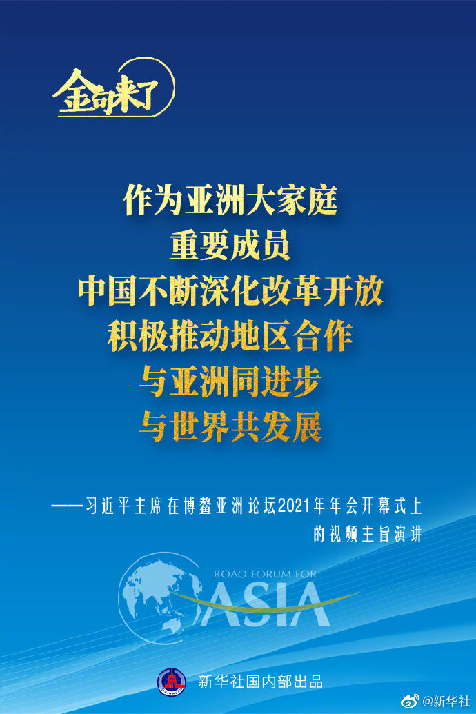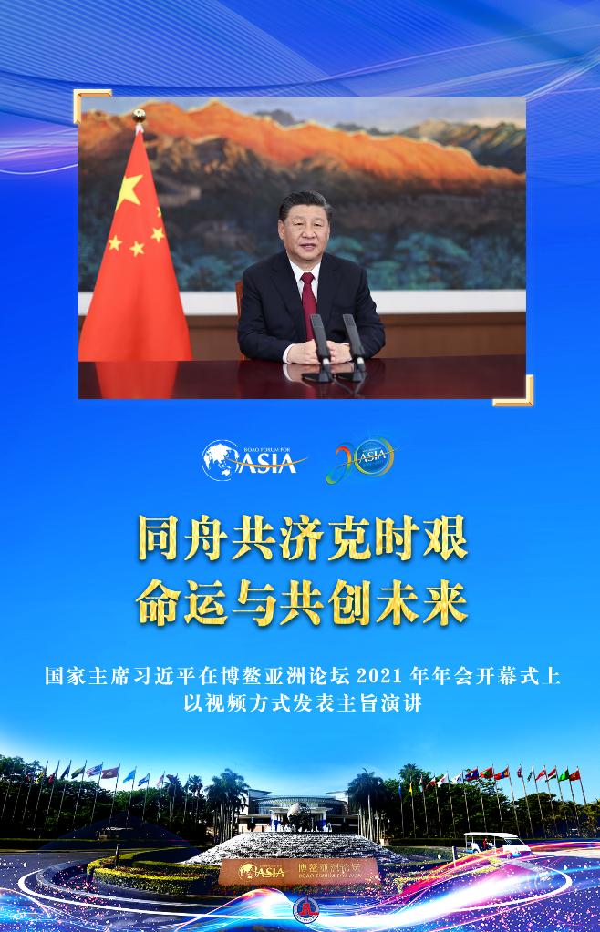 海報:習近平在博鰲亞洲論壇2021年年會開幕式上發表主旨演講 新華社記者 鞠鵬 孟麗靜 編制