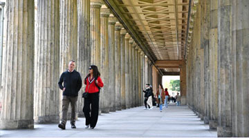 5月17日,在黎巴嫩卜苏斯丝绸博物馆,导游为当地学生讲解。