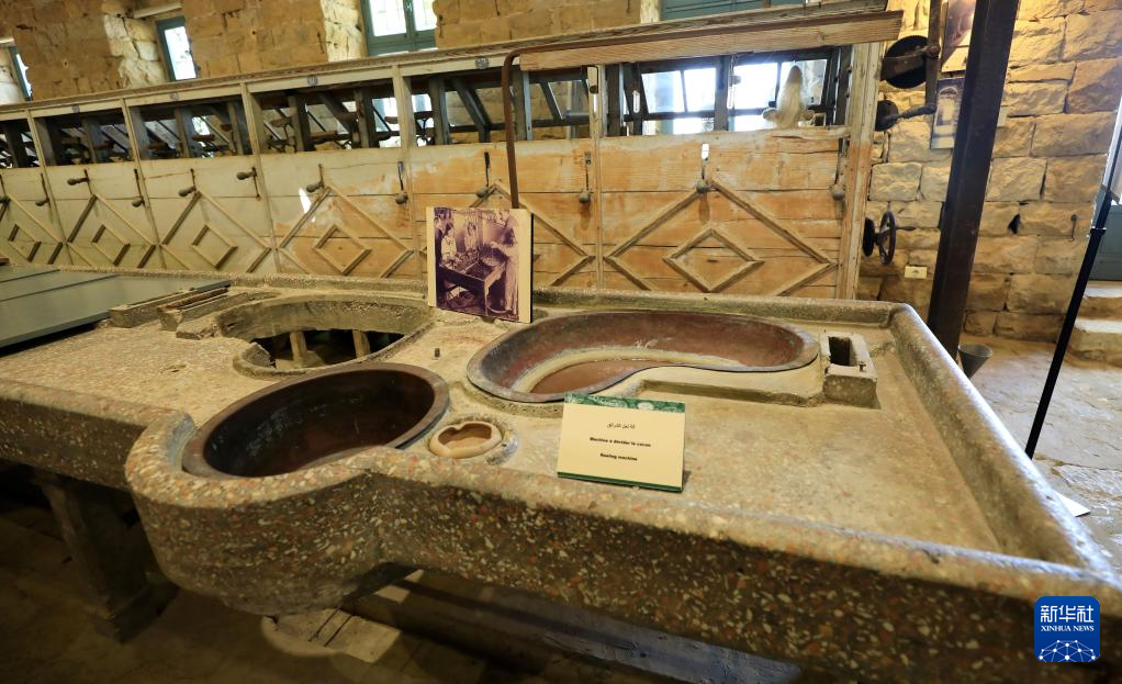 这是5月17日在黎巴嫩卜苏斯丝绸博物馆拍摄的丝绸工业设备。