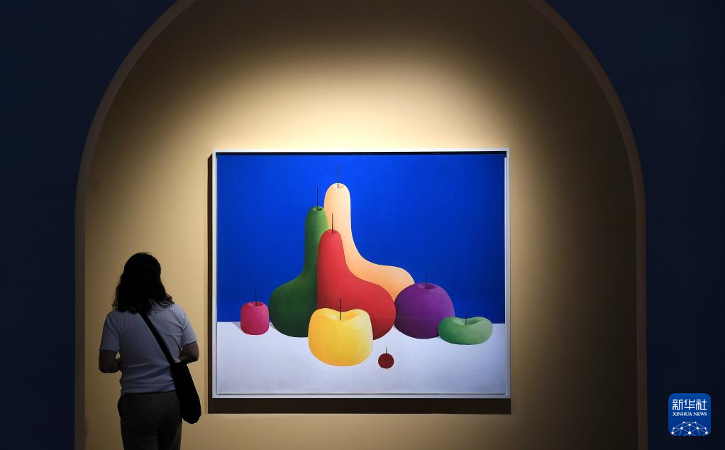 5月24日,在香港会议展览中心,参观者欣赏拍品《静物》。新华社记者 陈铎 摄