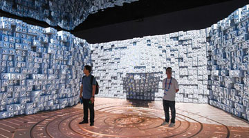 6月18日,观众在第十四届中国摄影艺术节图片展上参观。