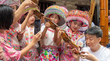 7月29日,在国家海洋博物馆,学生们在体验绘制外销瓷。