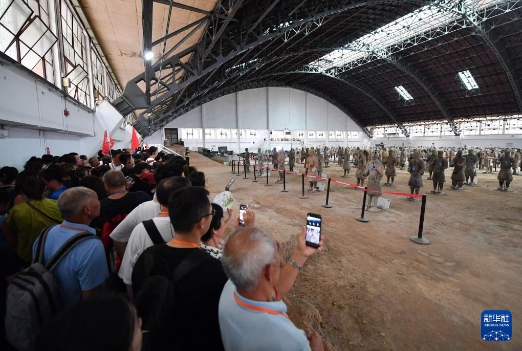 8月23日,大批游客来到秦始皇兵马俑博物馆参观。