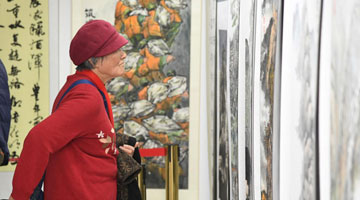 11月24日,在香港会议展览中心,观众欣赏溥儒作品《寒玉堂山水册》。