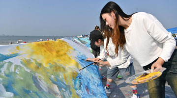 12月12日,观众在中国国家博物馆参观画作《永远做最可爱的人》(左)和印刷海报《永远做最可爱的人》。