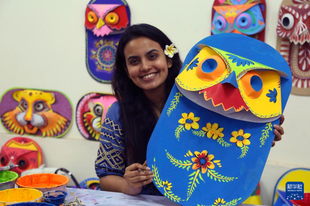 4月7日,在孟加拉国首都达卡,达卡大学的学生绘制孟历新年庆祝活动所需的工艺品。