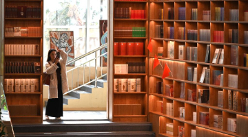 10月6日,游客在沈阳奉天工厂文创园内的城市书房内阅读。