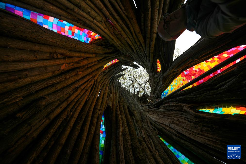 在波兰华沙,一棵古老的柳树在中空、枯萎后被艺术家以彩色玻璃、金属和木质结构修复装饰成艺术景观,被称作“柳树神殿”。