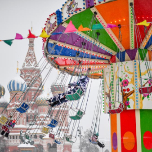 1月28日,人们在俄罗斯莫斯科红场乘坐游乐设施。新华社记者 张超群 摄