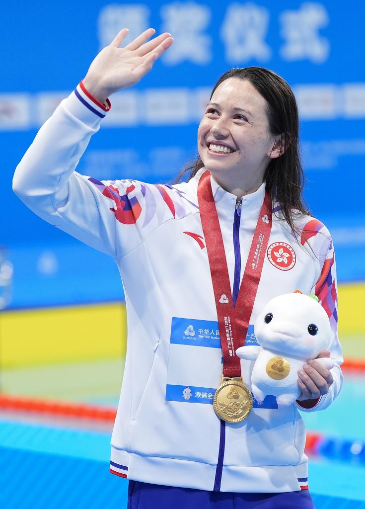 1分54秒85!首次参加全运会的东京奥运会银牌得主、世锦赛冠军、现亚洲纪录保持者香港选手何诗蓓在女子200米自由泳决赛中,帮助香港队夺得全运会游泳项目上的历史首金,河北队李冰洁和浙江队柳雅欣分列二、三名。
