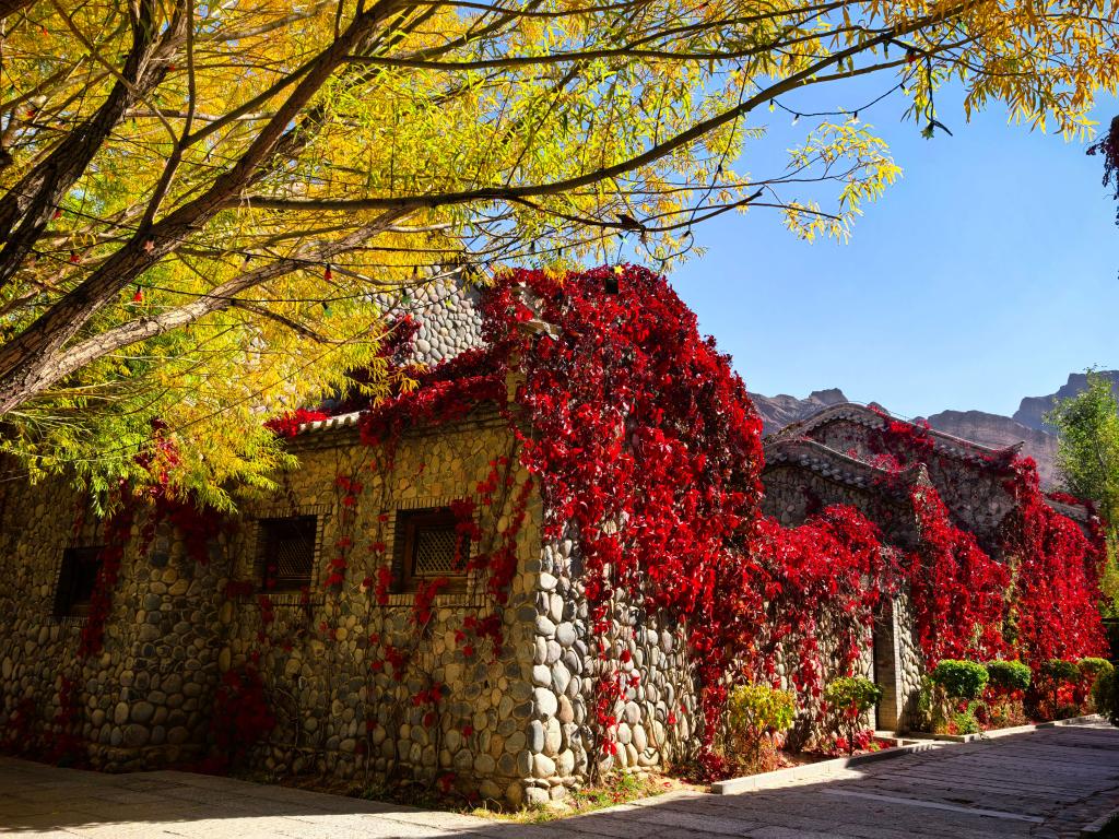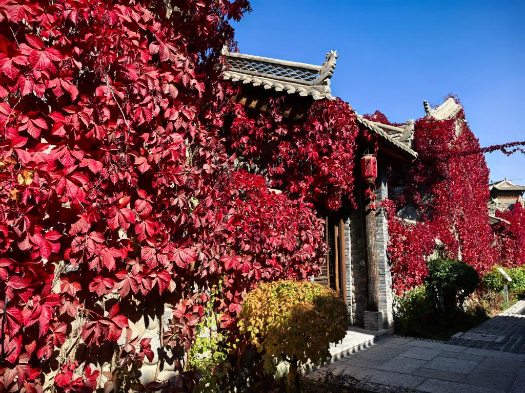 近日,甘肃省张掖市临泽县丹霞口文旅小镇秋意正浓。