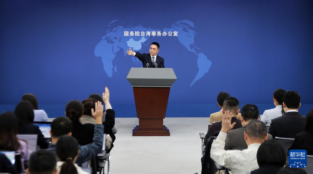 11月12日,国台办发言人陈斌华邀请记者提问。11月12日,国务院台湾事务办公室在北京举行例行新闻发布会。新华社记者 潘旭 摄