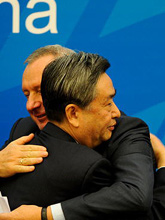 李從軍與俄塔社社長相擁道別