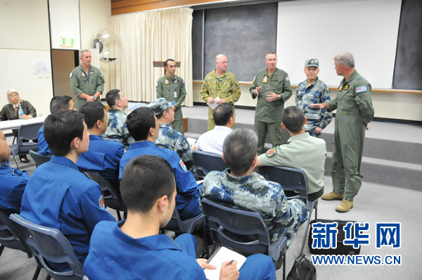 ????3月22日,中國(guó)空軍飛抵澳大利亞珀斯皮爾斯空軍基地后,與澳大利亞空軍就搜救工作交換意見(jiàn)。新華社記者 黃書波 攝