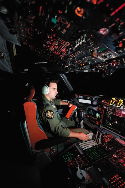 澳大利亞空軍機組人員參與搜索工作。新華社發