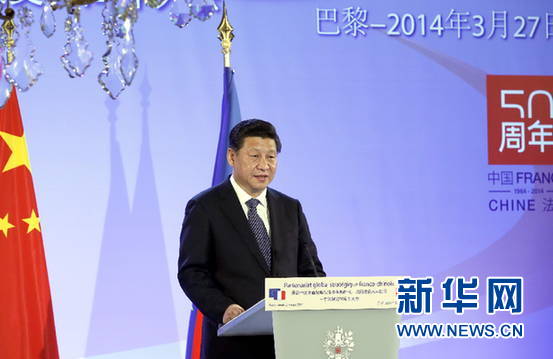 ????習近平在講話中表示,中法關系正處在承前啟后的重要時刻。我來到法國,帶來的是中國政府和人民對中法友誼的美好回憶和深化中法全面戰略伙伴關系的真誠愿望。50年前,毛澤東主席和戴高樂將軍以超凡的戰略眼光,毅然作出中法全面建交的歷史性決策。從此,中法關系成為世界大國關系中的一對特殊關系,始終走在中國同西方主要發達國家關系前列。