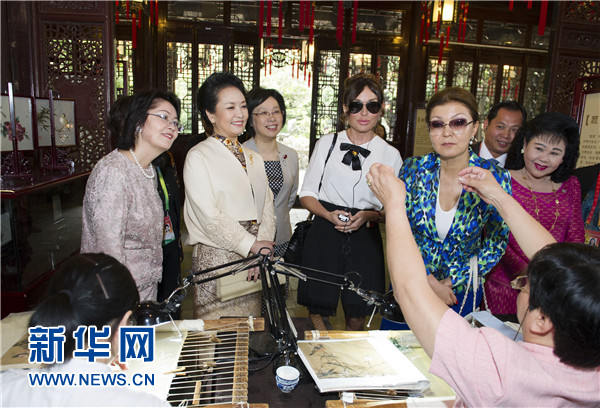 ????上午,柬埔寨首相夫人文拉妮、吉爾吉斯斯坦總統(tǒng)夫人阿坦巴耶娃、阿塞拜疆總統(tǒng)夫人阿利耶娃、哈薩克斯坦總統(tǒng)女兒納扎爾巴耶娃抵達(dá)豫園,受到彭麗媛熱情歡迎。