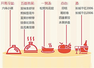 歡迎晚宴上共出現(xiàn)一個冷盤、五道熱菜,此外還有點心、水果、甜品等。蘇德興介紹,其中冷盤的食材基本都是上海本地原產(chǎn),烹飪用油來自婺源高山上自然生長的山茶,口味則凸顯江南的地方特色。上海市食品藥品監(jiān)督管理局更進一步透露,國宴的原材料“沒有特供,全是從超市買的”。
