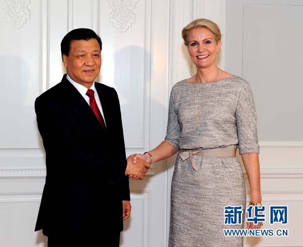 ??? 6月11日,正在丹麥進(jìn)行正式訪問的中共中央政治局常委、中央書記處書記劉云山在哥本哈根會(huì)見丹麥?zhǔn)紫嗤袑帲┟芴亍?新華社記者 饒愛民 攝