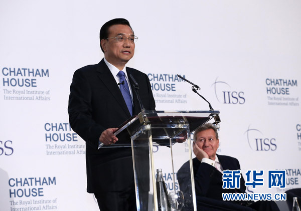 ??? 6月18日,國務院總理李克強在倫敦金融城市長官邸面向英國皇家國際問題研究所和國際戰(zhàn)略研究所兩大智庫發(fā)表題為《共建包容發(fā)展的美好世界》的演講。新華社記者 龐興雷 攝