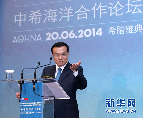 ??? 6月20日,國務院總理李克強在雅典與希臘總理薩馬拉斯共同出席中希海洋合作論壇并發(fā)表演講。新華社記者 龐興雷 攝