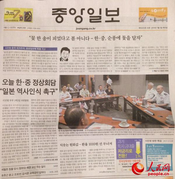 ??? 韓國《中央日報》在頭版頭條位置刊發(fā)習近平主席署名文章《風好正揚帆》 金慧廷 攝