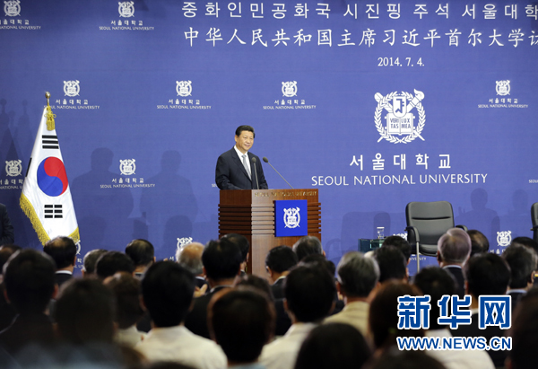 ???? 7月4日,國家主席習近平在韓國國立首爾大學發表題為《共創中韓合作未來 同襄亞洲振興繁榮》的重要演講。 新華社記者 丁林 攝
