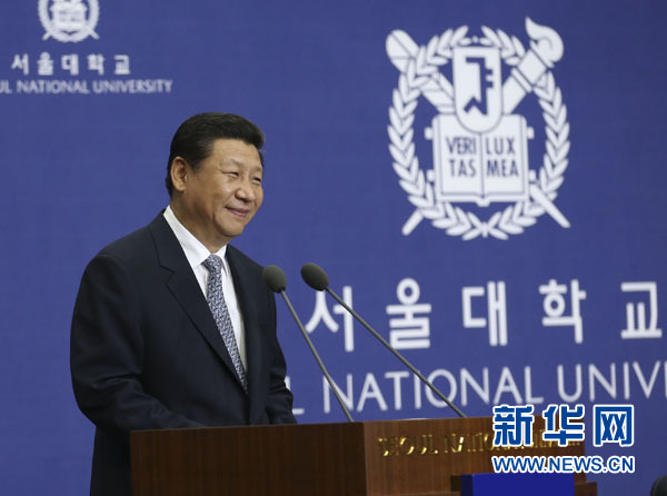 ???? 7月4日,國家主席習近平在韓國國立首爾大學發表題為《共創中韓合作未來 同襄亞洲振興繁榮》的重要演講。 新華社記者 蘭紅光 攝