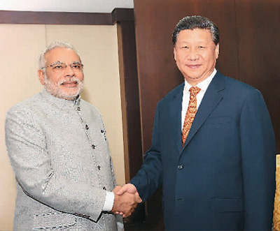 習近平強調,中印雙方要加強交往,我期待著在不久的將來訪問印度,歡迎莫迪總理早日訪華。雙方要對接各自發(fā)展戰(zhàn)略,建立更加緊密的發(fā)展伙伴關系,擴大文化、教育、宗教、青年等領域友好交流,在鐵路等基礎設施建設、產業(yè)投資等領域打造一批示范性項目,擴大服務貿易、投資、旅游等領域合作,逐步實現(xiàn)雙邊貿易總體平衡和可持續(xù)發(fā)展,推進孟中印緬經濟走廊建設,引領區(qū)域經濟一體化進程。中印要加強多邊領域合作,共同參與國際規(guī)則制定,增強發(fā)展中國家的話語權。中方歡迎印方作為創(chuàng)始成員加入亞洲基礎設施投資銀行。雙方要以積極和向前看的態(tài)度管控和處理分歧,通過友好協(xié)商,盡早找到公平合理、雙方都能接受的邊界問題解決辦法。在最終解決前,共同維護好邊境地區(qū)和平安寧。