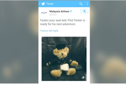 據(jù)阿根廷Infobae網(wǎng)站7月17日報道,馬來西亞航空公司的MH17航班在烏克蘭東部墜毀后,該航空公司刪除了MH17航班出事前的最后一條官方推特。這條英文推特的內容是:系上安全帶,飛行員“派克”已經(jīng)準備好了下一次旅程。推特還配了一張玩具熊假扮成飛行員準備起飛的照片。