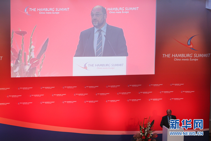 ??? 10月11日,在德國漢堡舉行的中歐論壇漢堡峰會上,歐洲議會主席馬丁?舒爾茨發言。中歐論壇漢堡峰會第六屆會議11日在德國漢堡閉幕。本屆峰會以“中國與歐洲相遇”為主題。來自中歐政治、經濟和學術界的500多位代表聚集在一起,探討中歐經貿合作未來趨勢、中國經濟的綠色發展等重要議題。新華社記者張帆攝