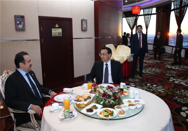 ????新華網北京12月16日電 據新華社“新華國際”客戶端報道,“一日之計在于晨”。克強總理15日的緊張日程從一頓早飯開始。天剛蒙蒙亮,哈薩克斯坦總理馬西莫夫就來到克強總理下榻的酒店——北京大廈,邀請克強總理一起吃早餐。
